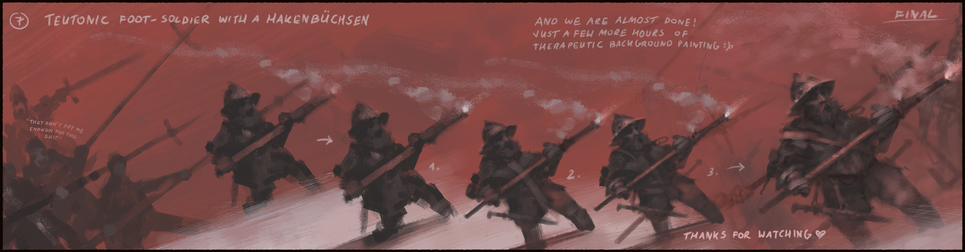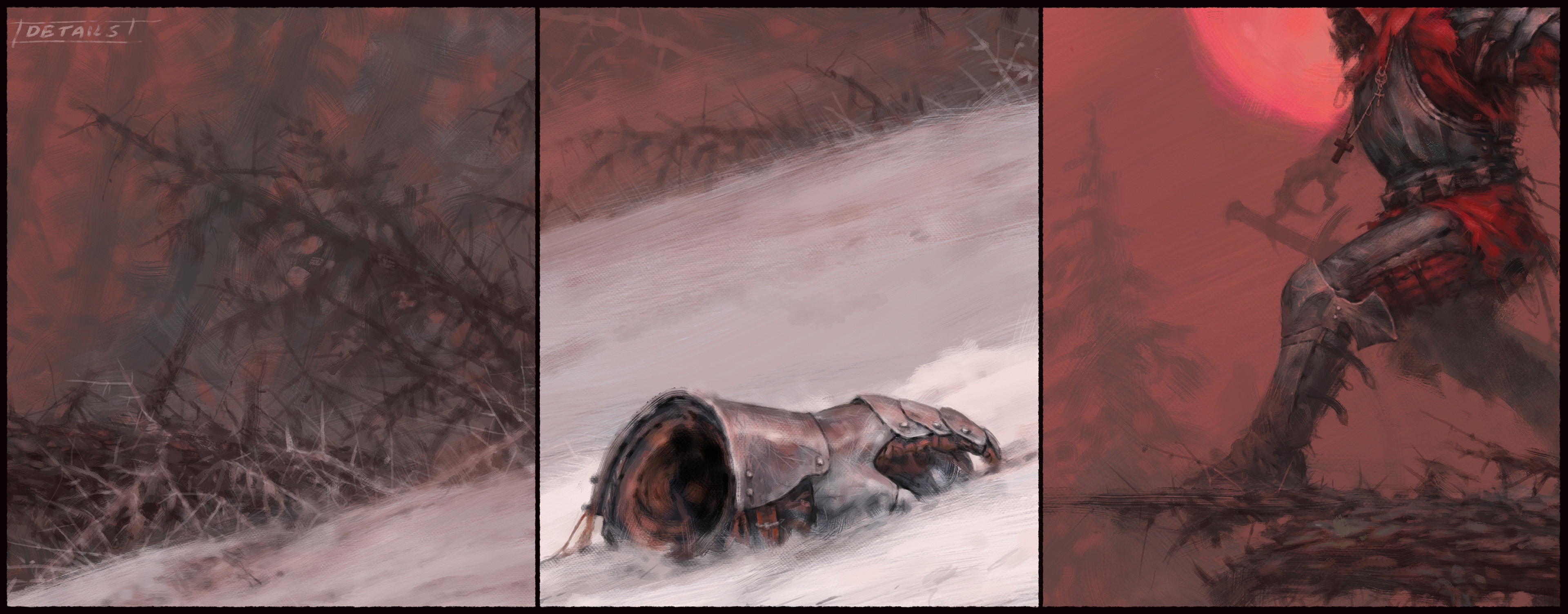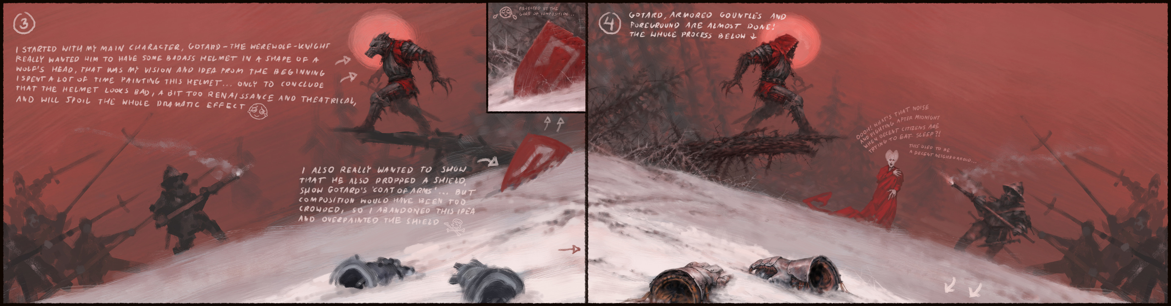 Gniewosz, also known as Gotard, sat down for a moment to rest and catch his breath. Since he lost his horse two days ago, this pursuit became much more of a struggle and with every step through this frozen wasteland his armor felt heavier and heavier. He has been following the Teutonic raiding party through the frozen Baltic for many days. They were heading north. Among the dozens of those poor souls captured by rejza, was his beloved Milena. Gotrad had once visited these area with his father and recognized the coastline of a land known as Courland. Those damned Teutonic Knights are heading towards Alschwangen Castle - He thought. He knew had to do something before they got there or he would never see his golden-haired Milena again! Thoughts were swirling in his head, a strange rush took over his body. Heart started pounding. Blood in the mouth, pain, sweat, panting and growling. He was beginning to lose control! “Pull yourself together! You are a knight, you made a vow! You swore before your Father, before God! You mustn’t! Naaaaaagrrr!" He howled, curled up, his body tensed so much that every part of his armor began to creak. "Agrrrrrrr!". He threw off his armored gloves, tore off the sleeves of gambeson and ran through the forest. Driven by his inner beast, by his curse.