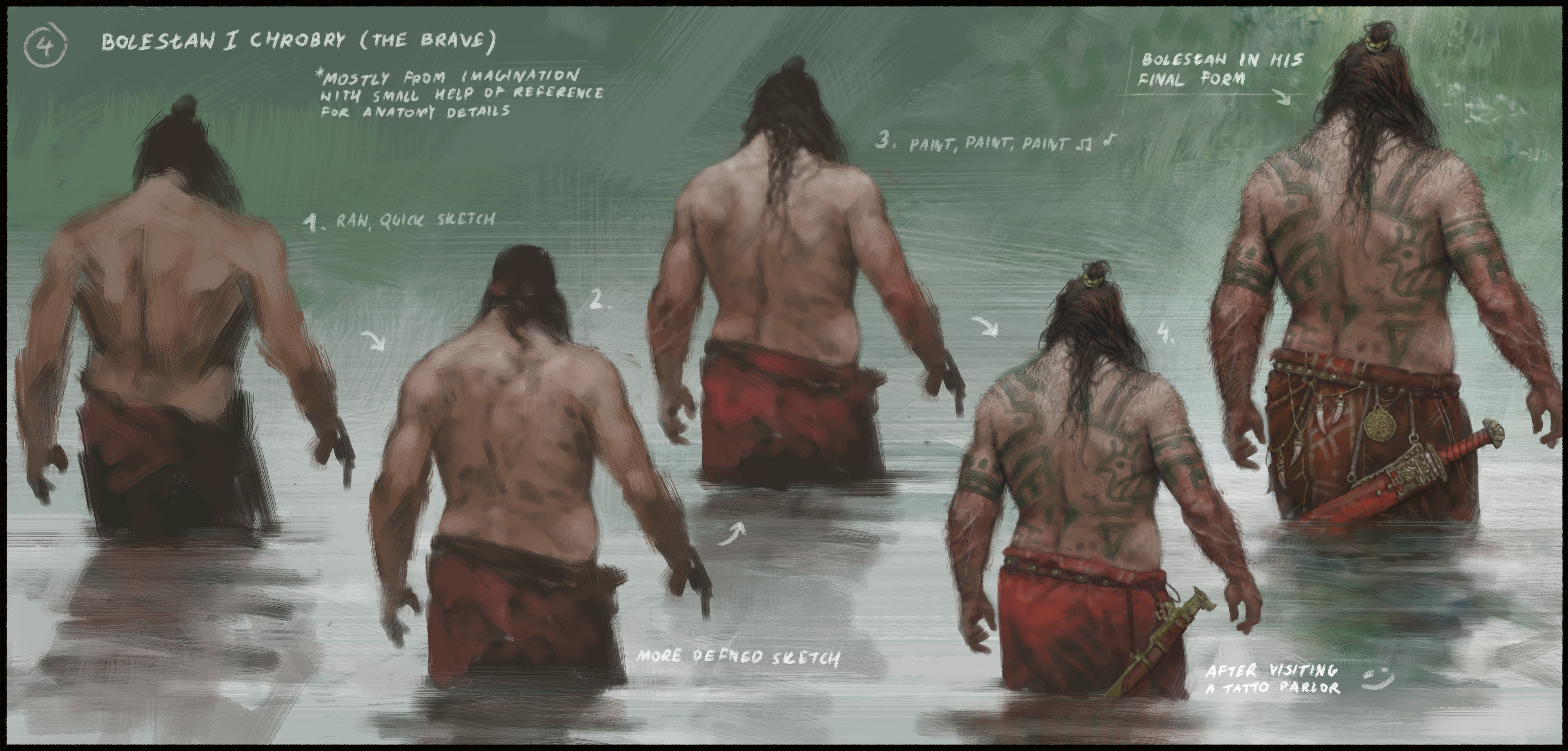 Bolesław, like his father Mieszko, was a fearless warrior, wise, cunning and charismatic leader, but most of all pragmatist. Syncretism suited him, especially when it helped in realization of his personal goals and ambitions. He was baptized, and posed for years for an exemplary Christian, to secure the favor of the Roman Church and be able to officially seek a royal crown accepted by the Western world and The Holy Roman Empire, but he never renounced the faith of his ancestors and secretly cultivated the old ways and old gods. With his “condition” he didn’t really have much choice. Bolesław was calm and ready. Weavers of Fate, all his choices, all battles, all deeds, all spilled blood have led him to this place. This ancient ritual and coronation has an even greater significance for him than the official christian one, which will take place in a few days in the Gniezno Cathedral. After years of long and bloody wars, he managed to defeat and unite all Lechitic tribes, wild packs of Luticians and savage Pomeranians. At dawn, between night and day, under the sacred oak of Weles, he will become the ruler of all Vukodlak tribes from the Odra river to Kyivan Rus! He will become the first King of the Vukodlaks! His legacy, a trace left on the path of the ancestors.